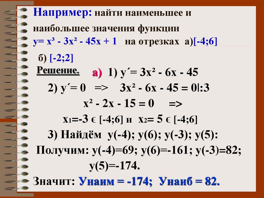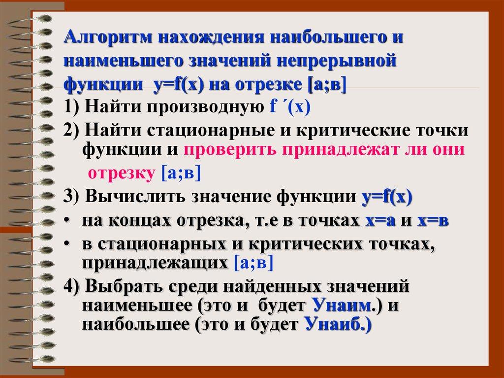 наименьшего значений функции