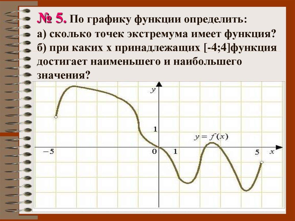 № 5. По графику функции определить:а) сколько точек экстремума имеет функция?