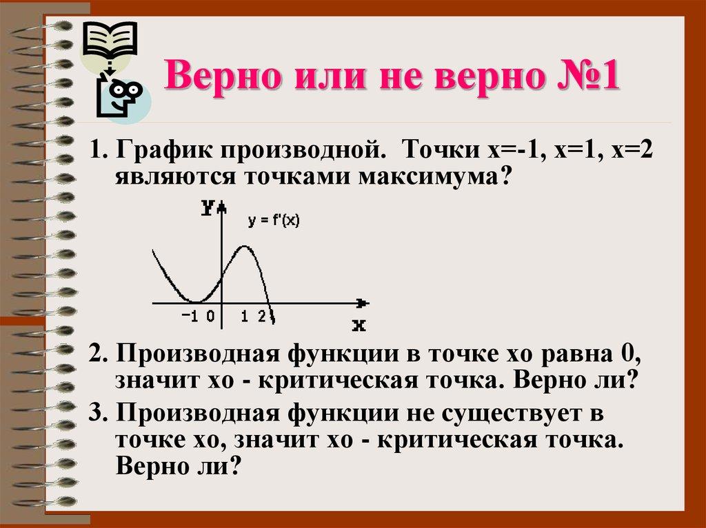 Верно или не верно №11. График производной. Точки х=-1, х=1, х=2