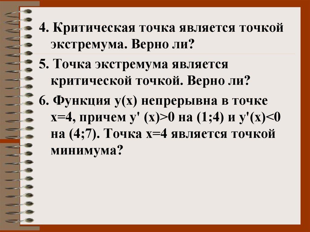 4. Критическая точка является точкойэкстремума. Верно ли?
