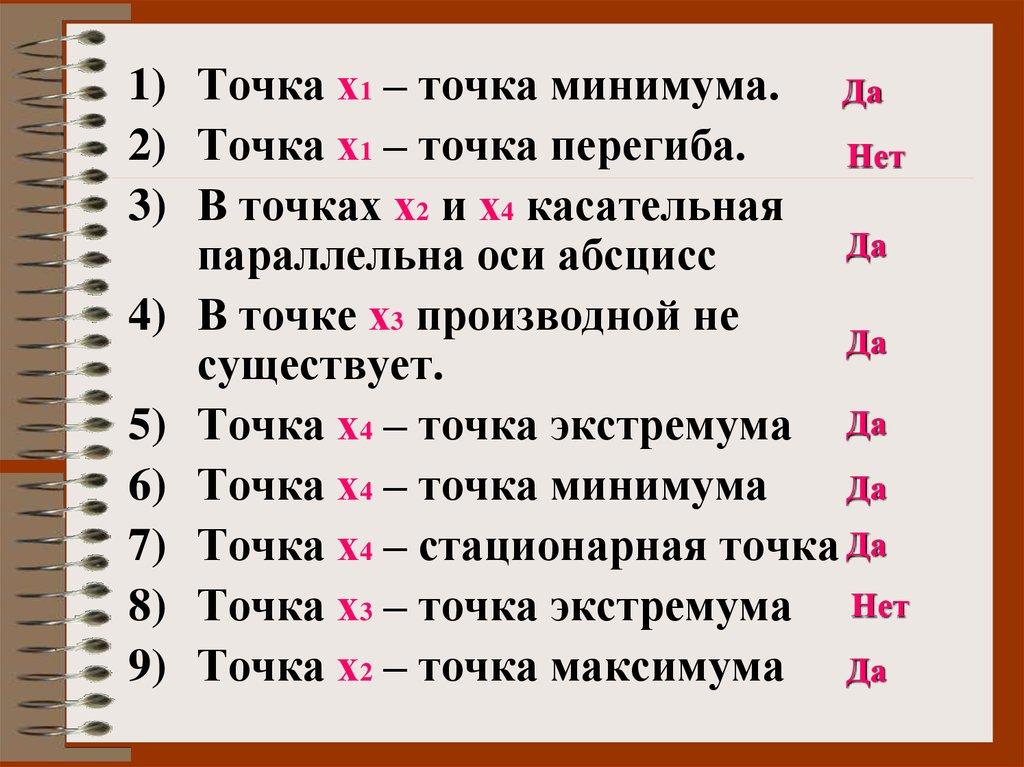1) Точка х1 – точка минимума. Да2) Точка х1 – точка перегиба.
