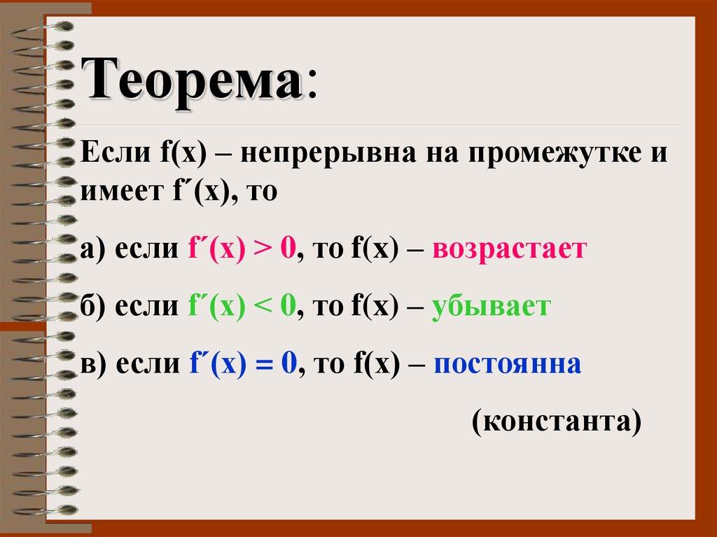 функция убывает; если f ΄(х) =0 – функция постоянна)