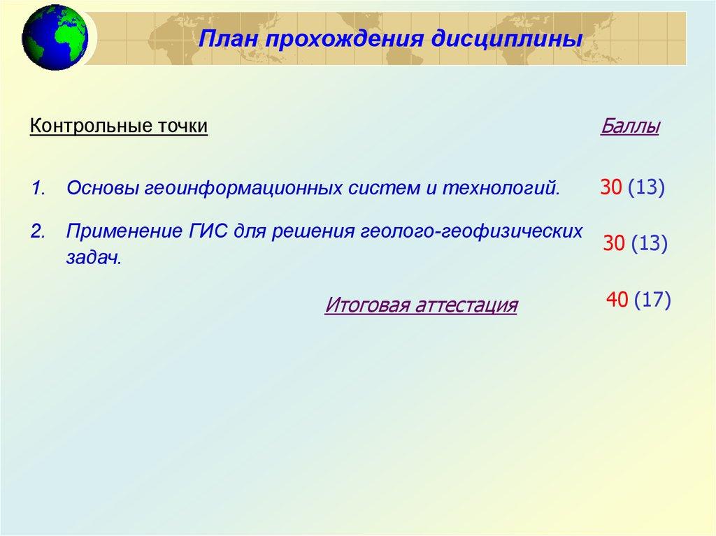 План прохождения дисциплиныКонтрольные точки