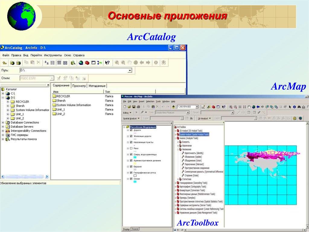 Основные приложенияArcCatalog
