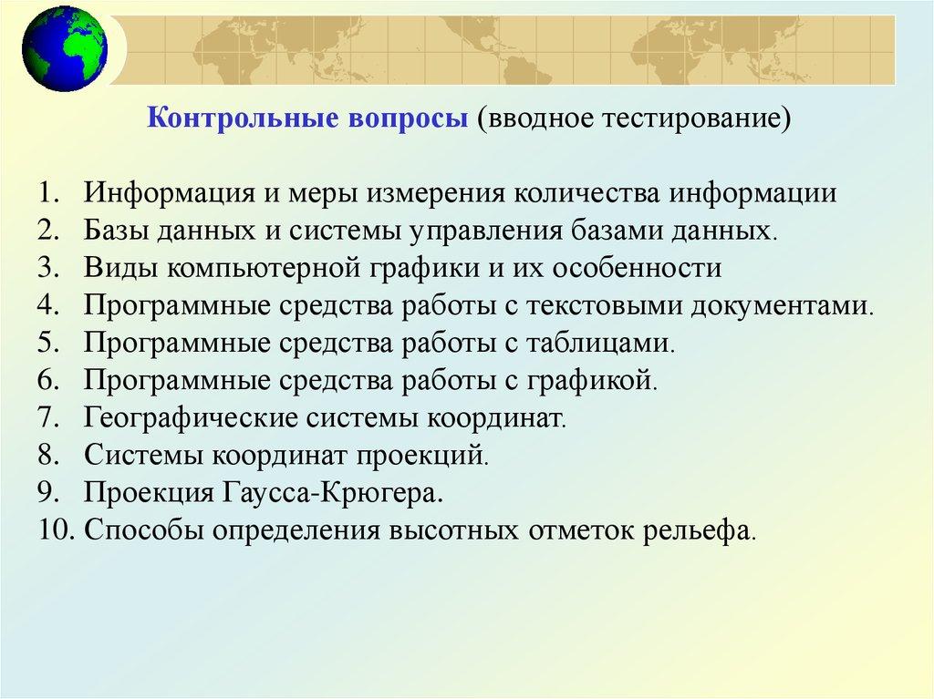 Контрольные вопросы (вводное тестирование)1. Информация и меры измерения количества информации