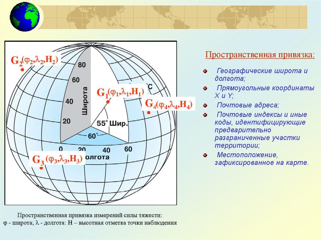 Пространственная привязка измерений силы тяжести: