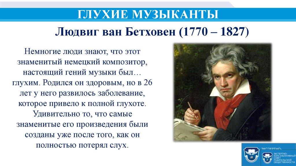 ГЛУХИЕ МУЗЫКАНТЫЛюдвиг ван Бетховен (1770 – 1827)