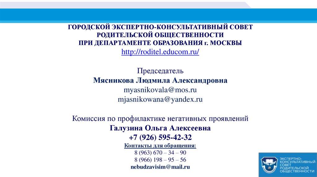 ГОРОДСКОЙ ЭКСПЕРТНО-КОНСУЛЬТАТИВНЫЙ СОВЕТРОДИТЕЛЬСКОЙ ОБЩЕСТВЕННОСТИ