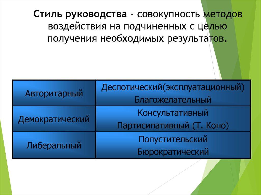 - стремиться вовлечь персонал в процессуправления, используют свой авторитет