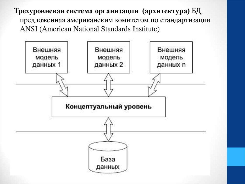 Трехуровневая система организации (архитектура) БД,предложенная американским комитетом по стандартизации