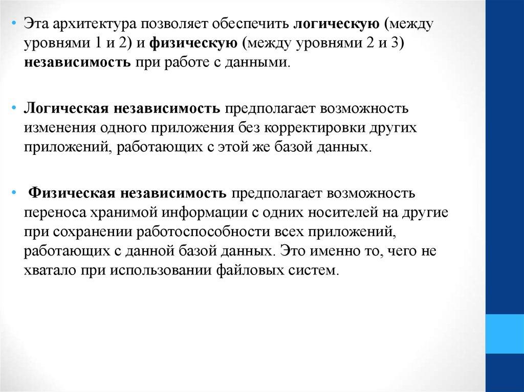 трехуровневая архитектураОсновная цель этой архитектуры состоит в отделении
