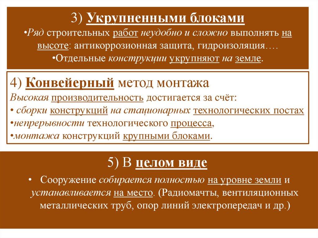 3) Укрупненными блоками•Ряд строительных работ неудобно и сложно выполнять на