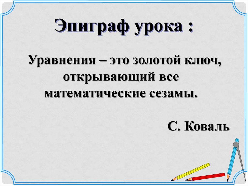 Уравнения – это золотой ключ,открывающий все