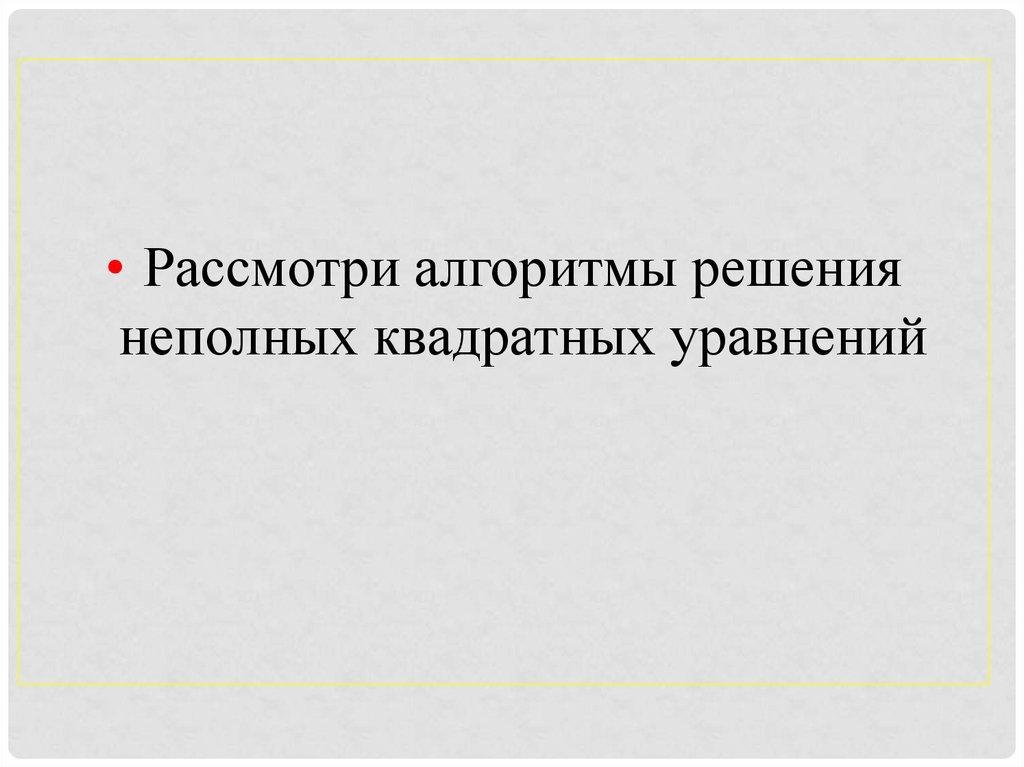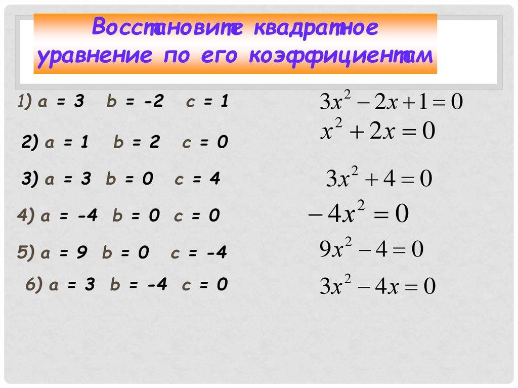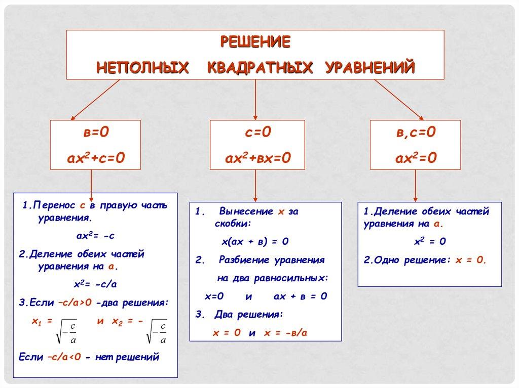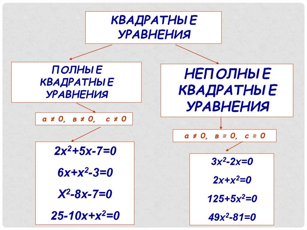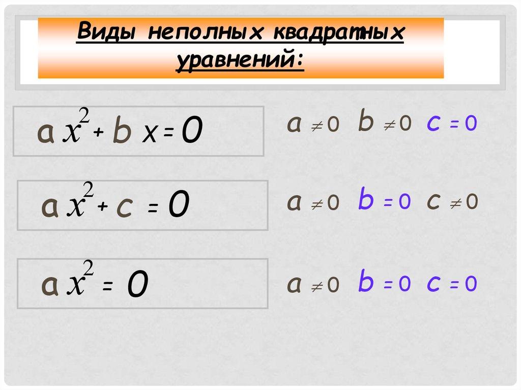 Неполные квадратные уравнения