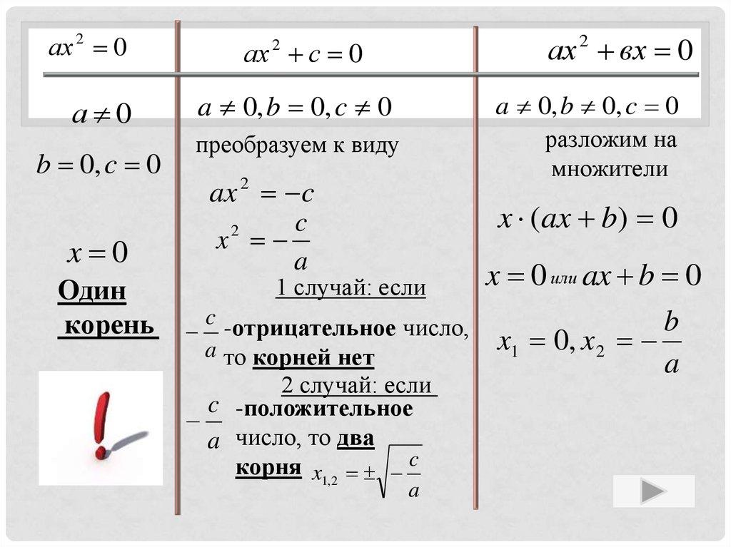 3. УРАВНЕНИЕ ВИДА AX2=0, ГДЕА≠0