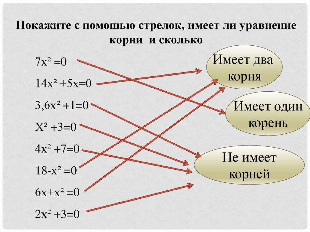 Покажите с помощью стрелок, имеет ли уравнениекорни и сколько