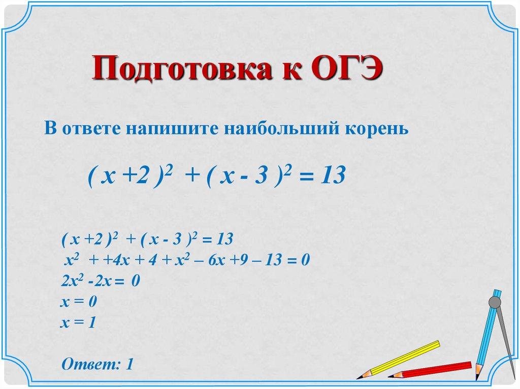 Подготовка к ОГЭВ ответе напишите наибольший корень