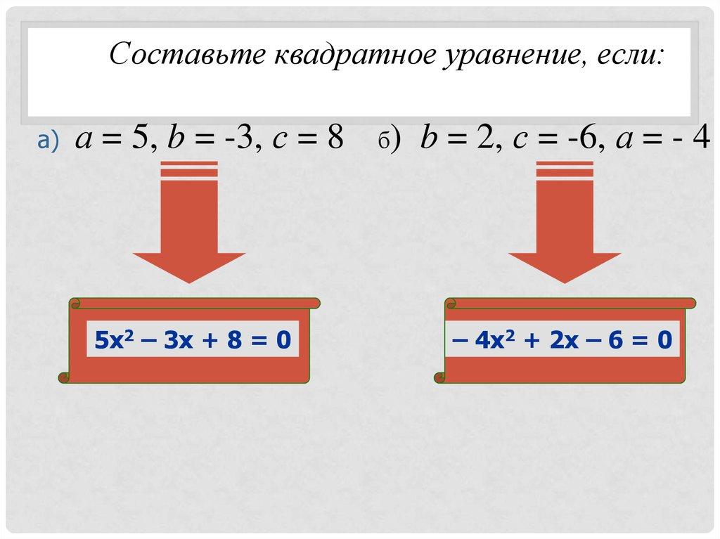 Составьте квадратное уравнение, если:а)