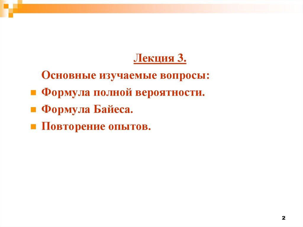 Лекция 3.Основные изучаемые вопросы: