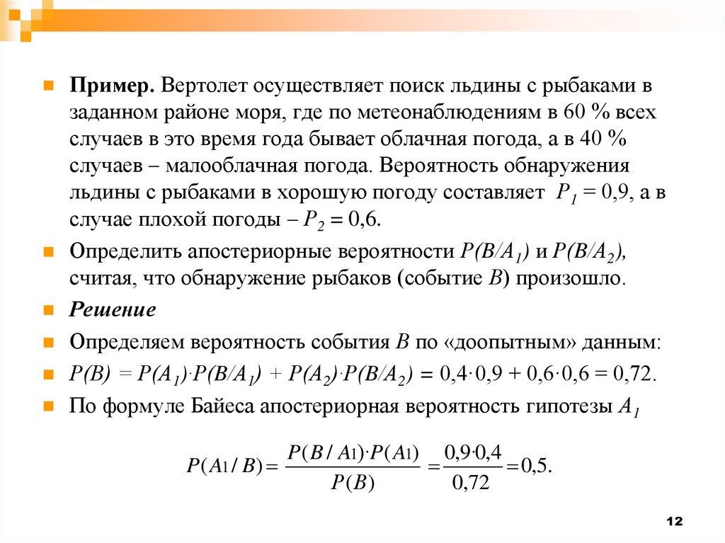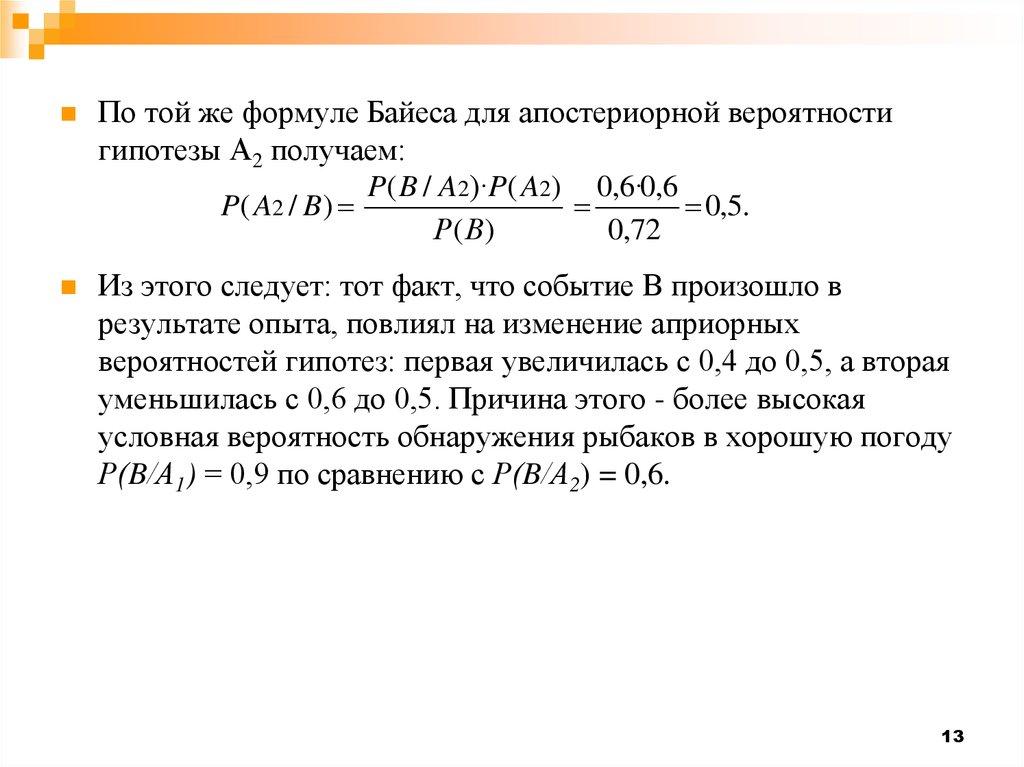 вероятностей. Она дает возможность пересчитать «априорные»