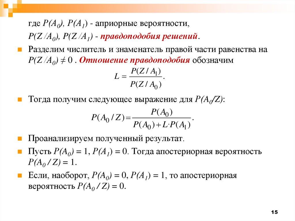 Р(А0/Z) и Р(А1/Z), которые зависят от Z - информации,