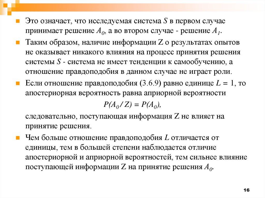 опытов система S руководствуется при принятии решения лишь