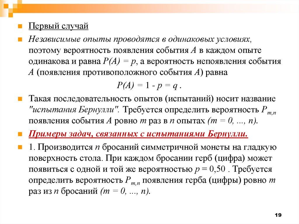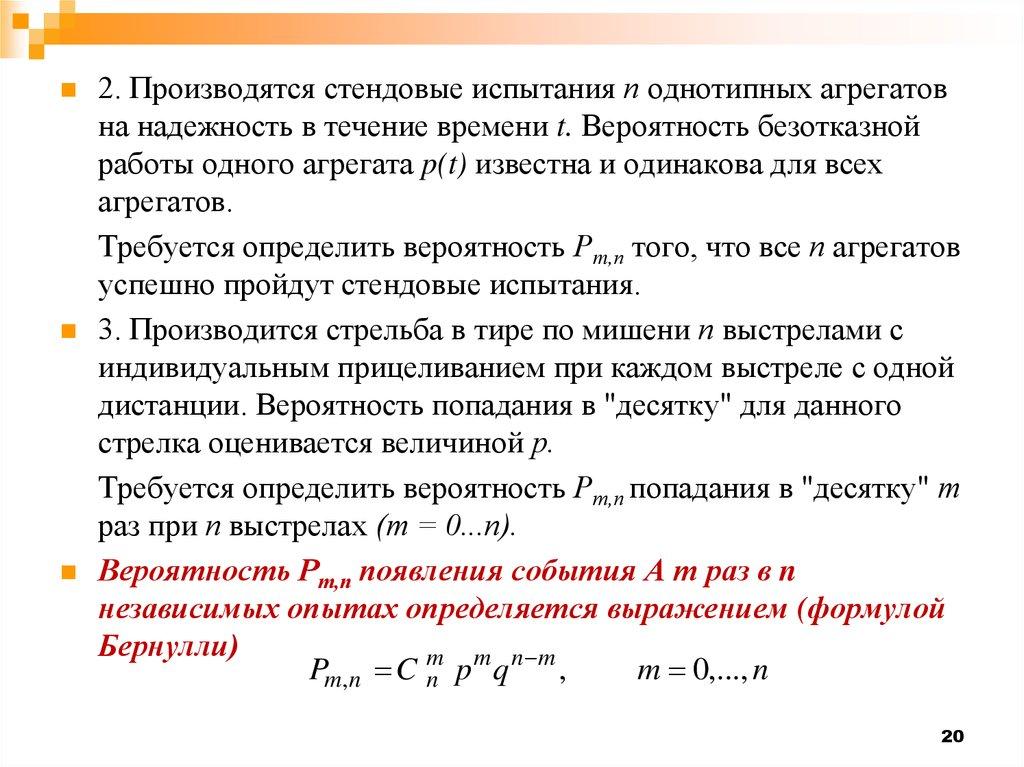 "испытания Бернулли". Требуется определить вероятность Рт,п