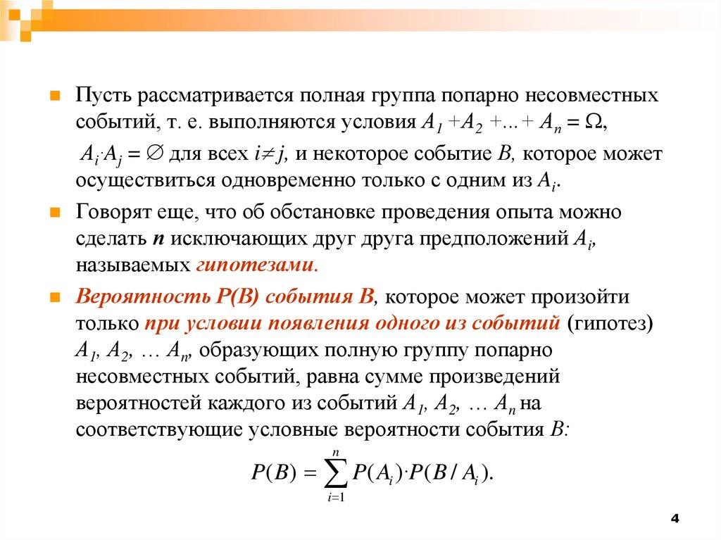 А1, А2, … Аn, образующих полную группу попарно