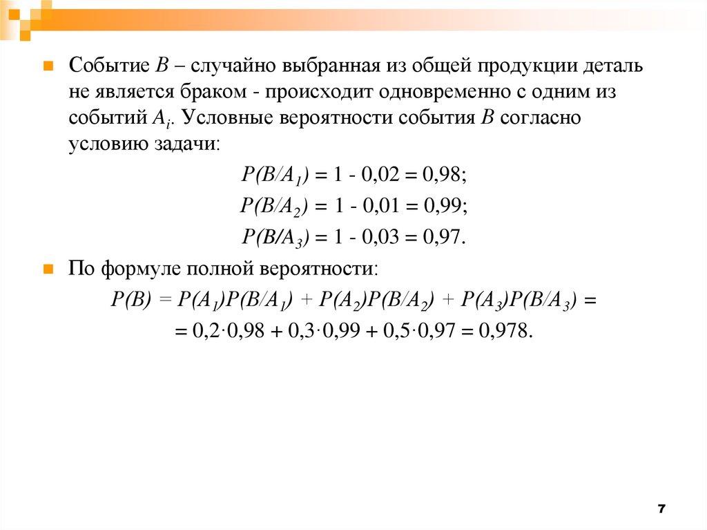 Тогда вероятность события В определяется как сумма