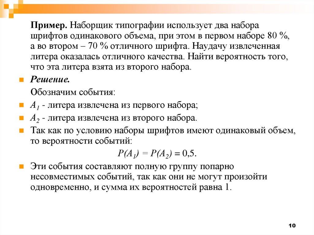 несовместных событий, равна сумме произведений