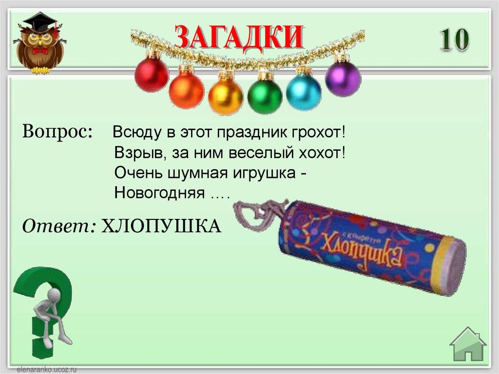 Вопрос: Всюду в этот праздник грохот!Взрыв, за ним веселый хохот!