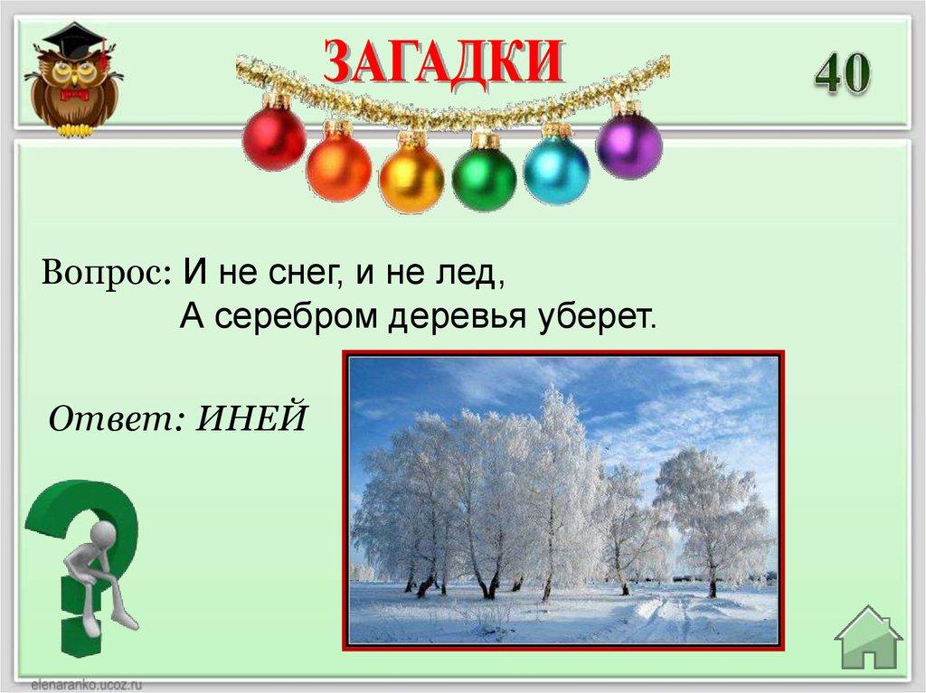 Вопрос: И не снег, и не лед,А серебром деревья уберет.