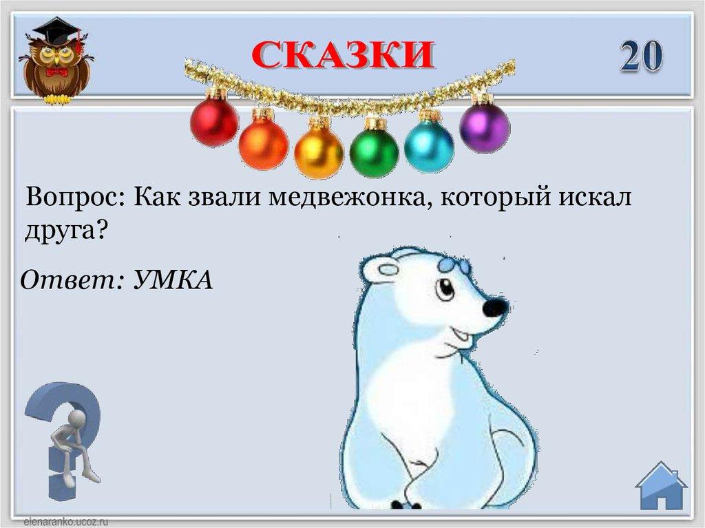 Вопрос: Как звали медвежонка, который искалдруга?