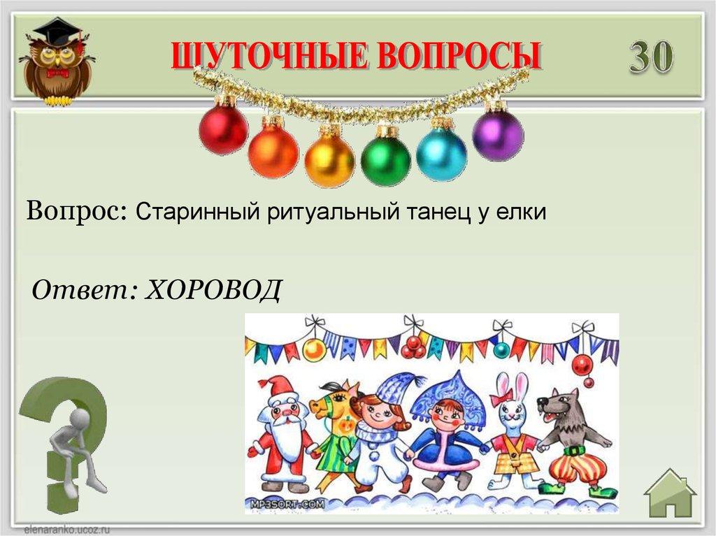 Вопрос: Старинный ритуальный танец у елкиОтвет: ХОРОВОД