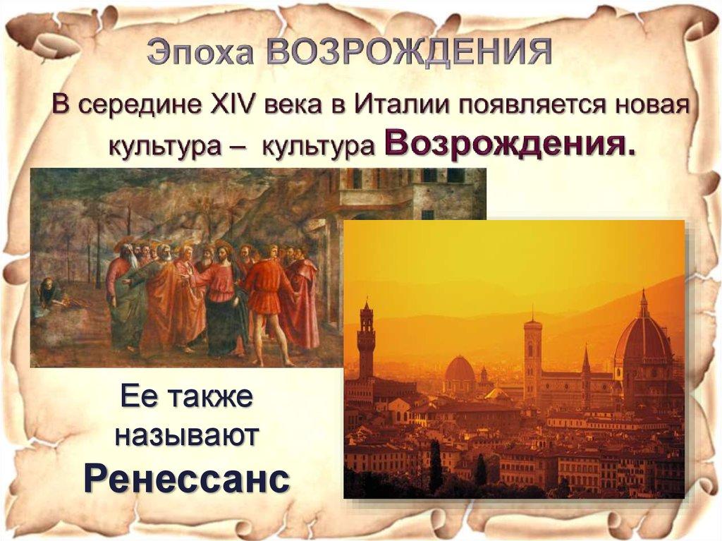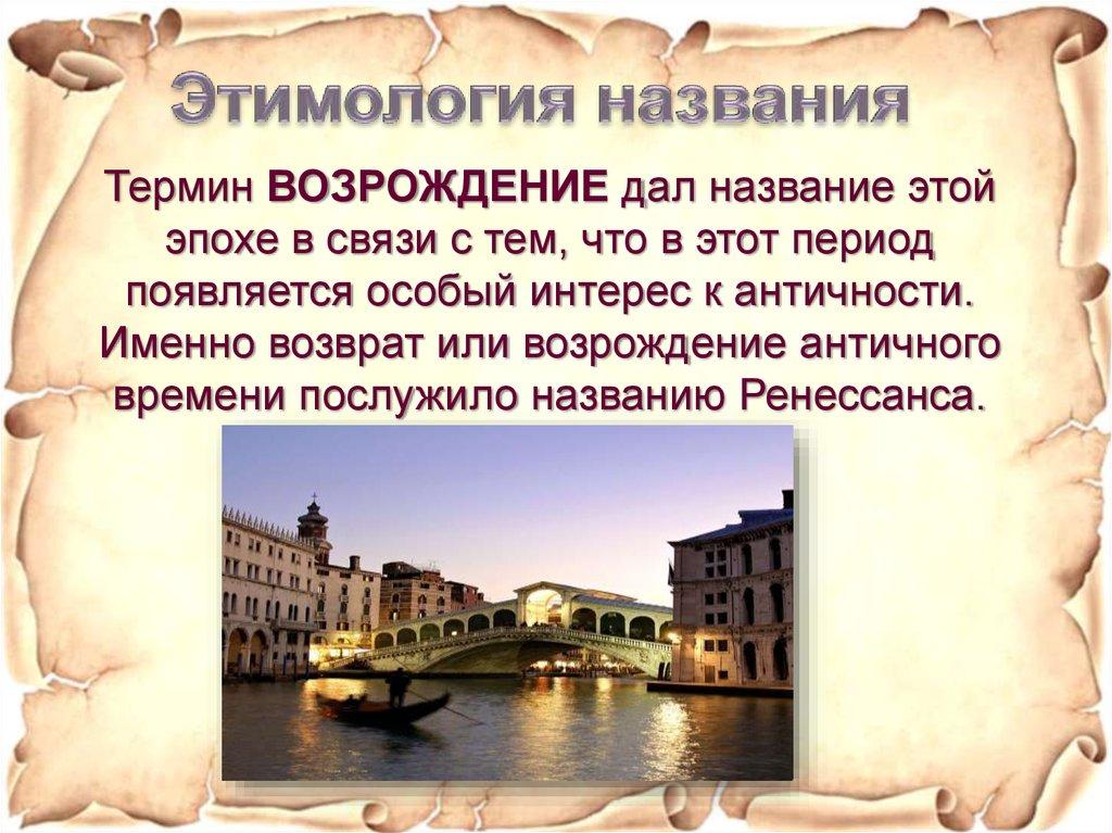 Термин ВОЗРОЖДЕНИЕ дал название этойэпохе в связи с тем, что в этот период