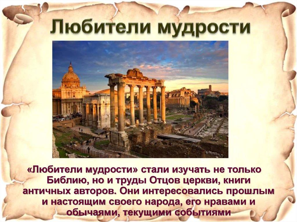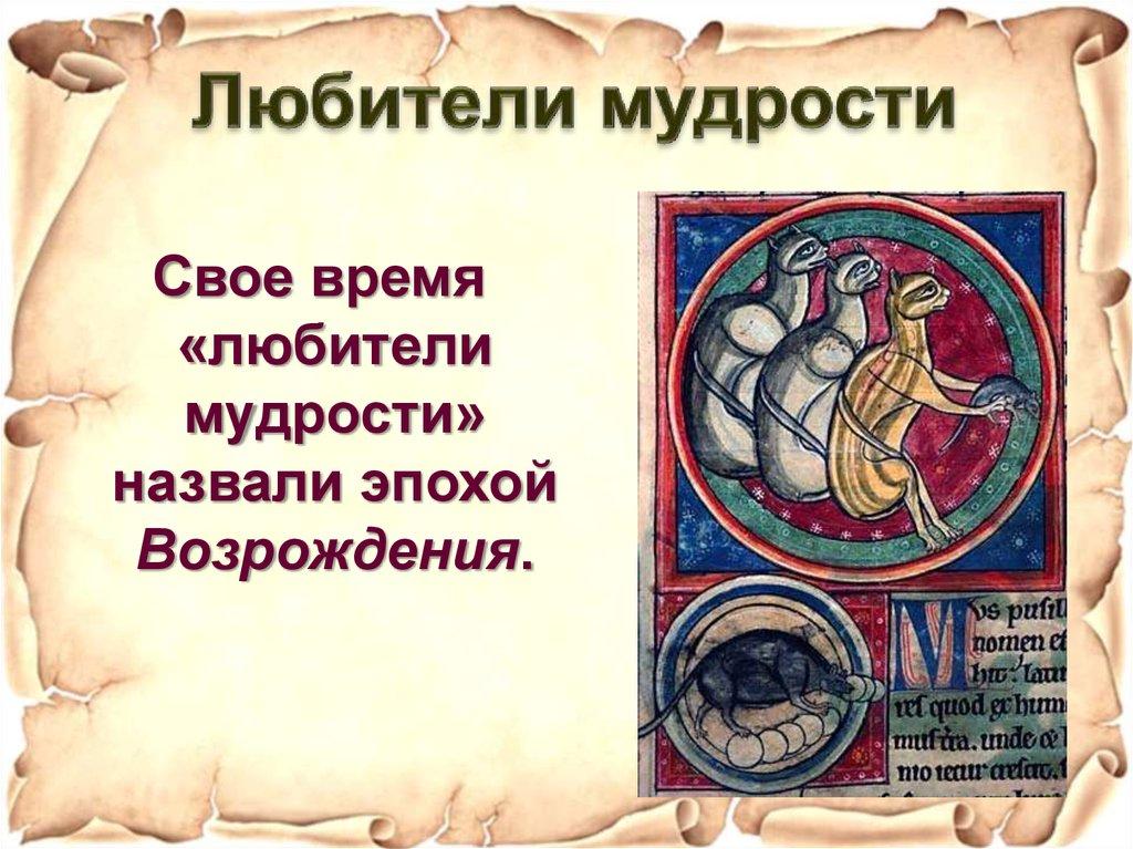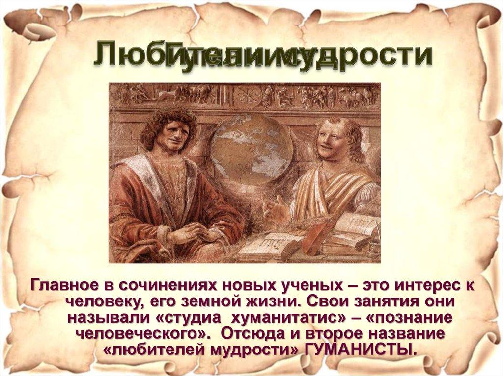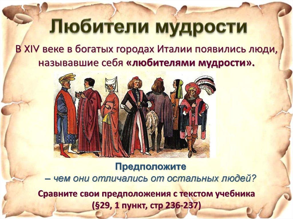 В XIV веке в богатых городах Италии появились люди,называвшие себя «любителями мудрости».