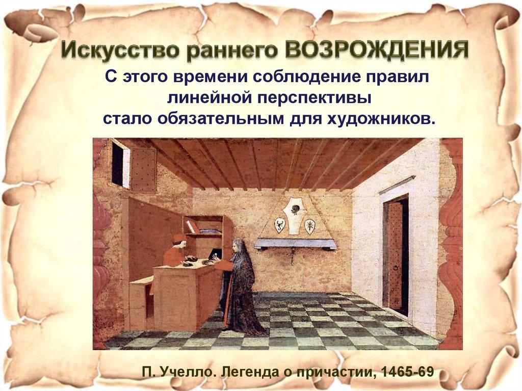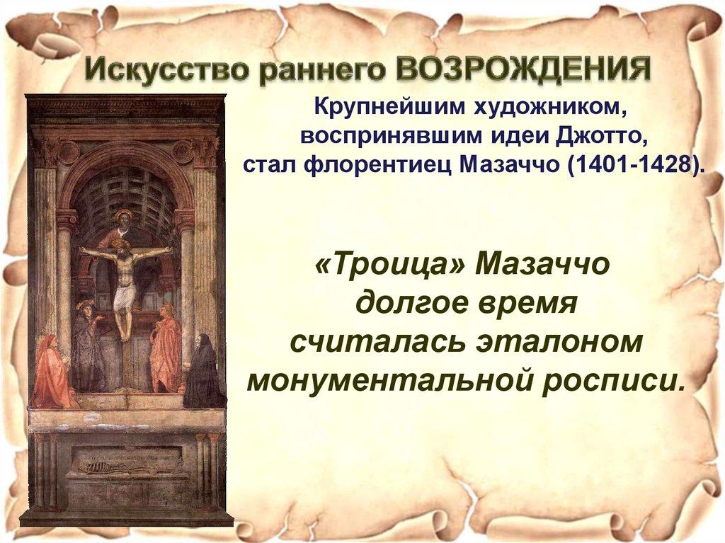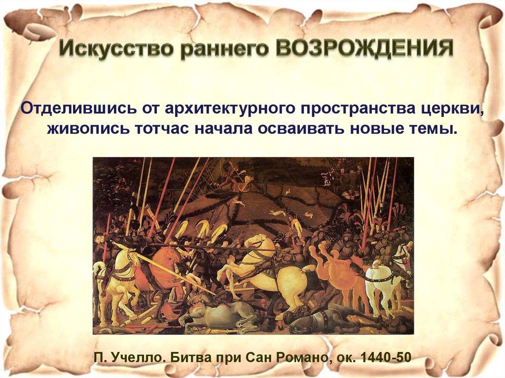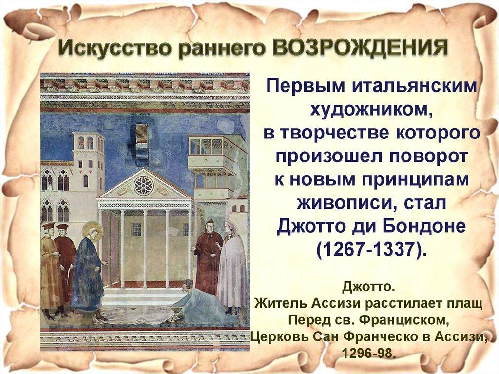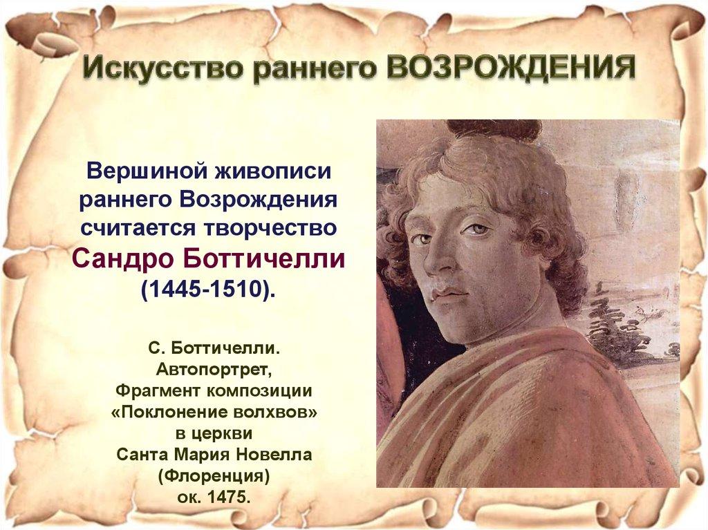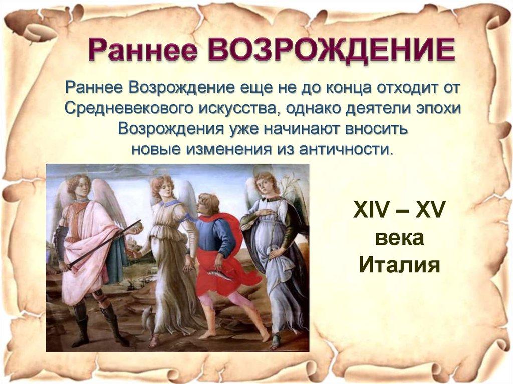 Раннее Возрождение еще не до конца отходит отСредневекового искусства, однако деятели эпохи