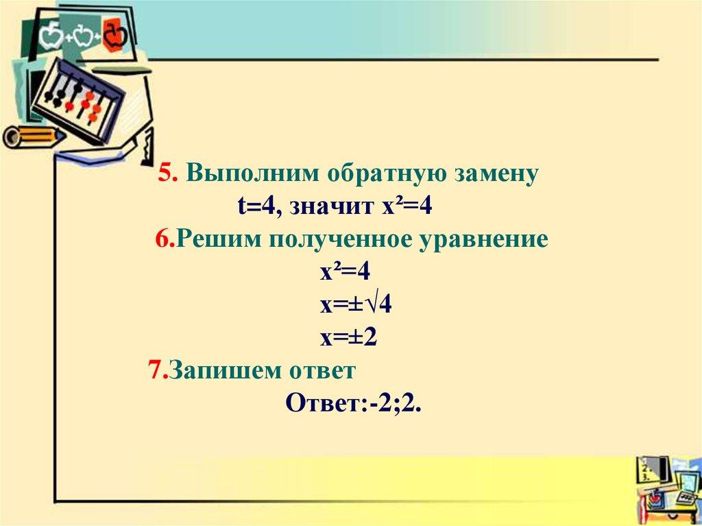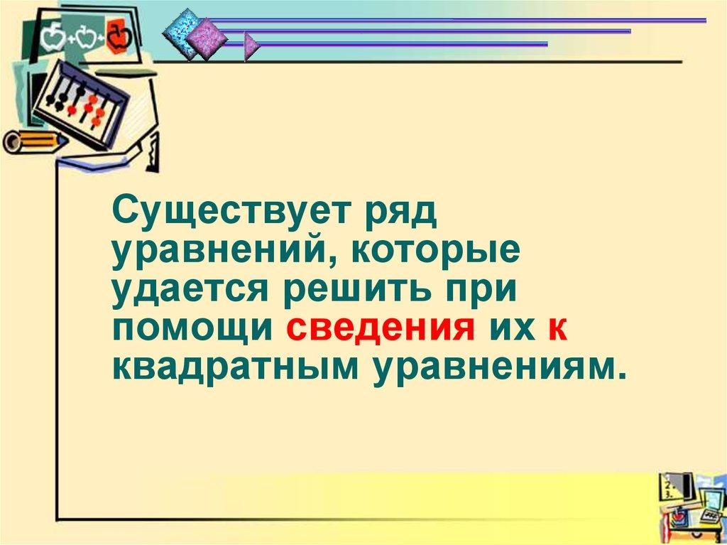 .Решение уравнений, сводящихся к квадратным, сводится к