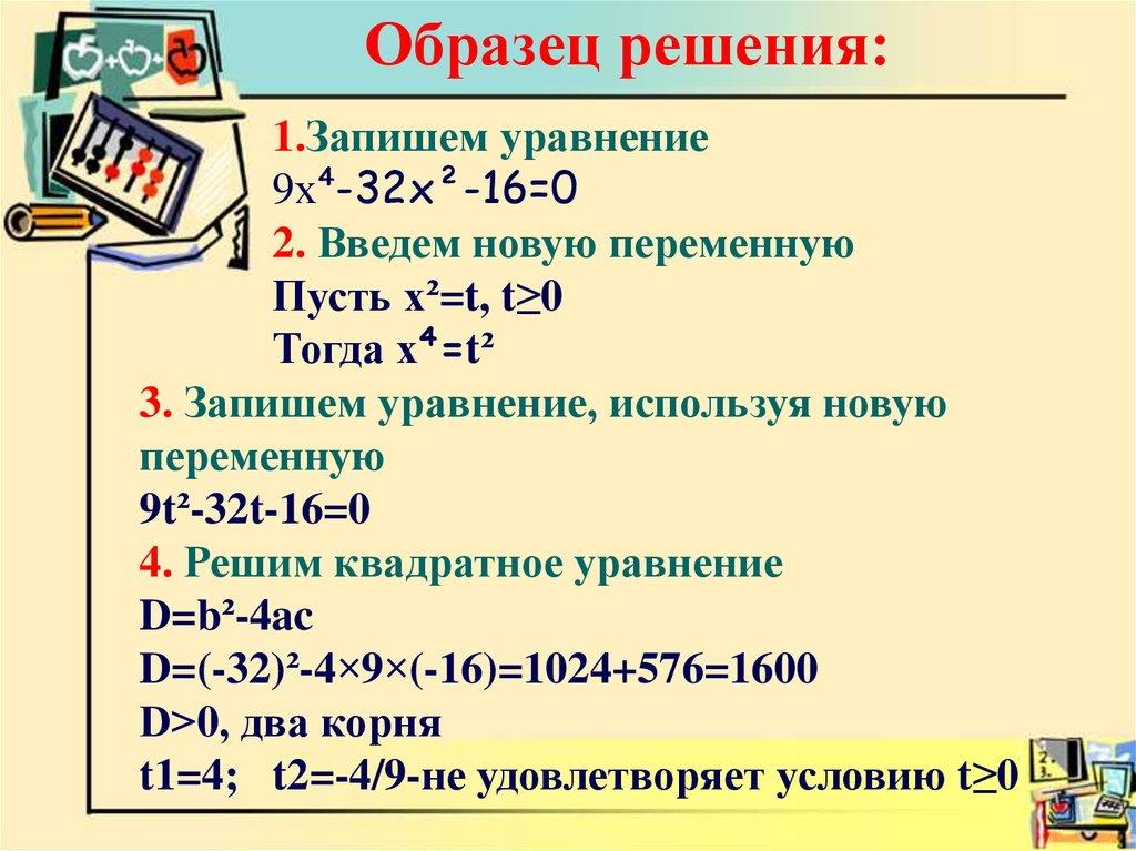 Уравнение ах⁴+вх²+с=0, гдеа≠0,