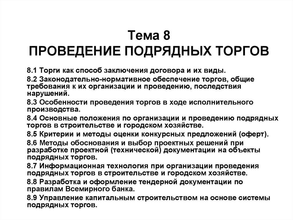 1. Тема 8 ПРОВЕДЕНИЕ ПОДРЯДНЫХ ТОРГОВ