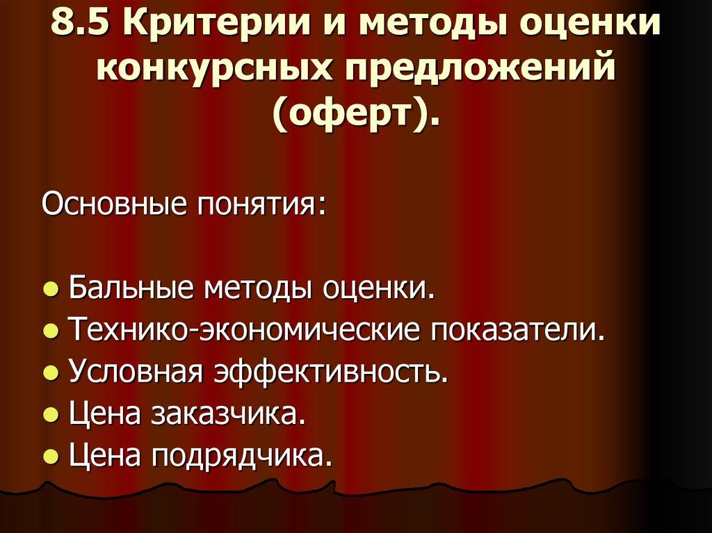 8.5 Критерии и методы оценки конкурсных предложений (оферт).