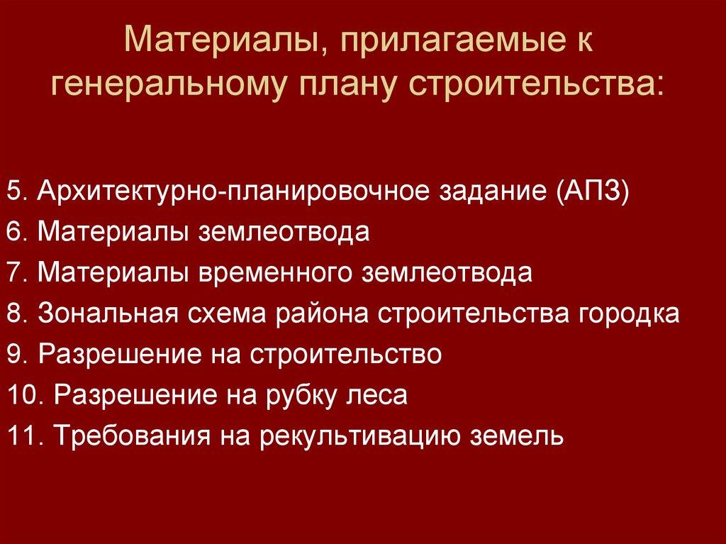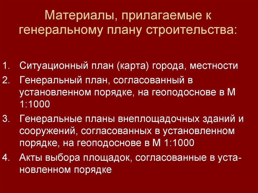 45. Материалы, прилагаемые к генеральному плану строительства: