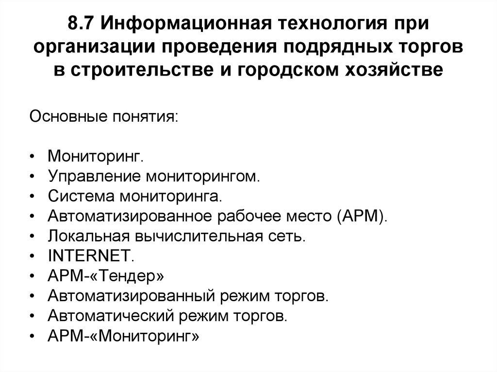 47. 8.7 Информационная технология при организации проведения подрядных торгов в строительстве и городском хозяйстве