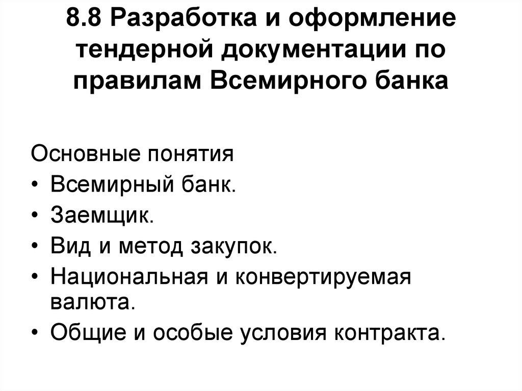 51. 8.8 Разработка и оформление тендерной документации по правилам Всемирного банка