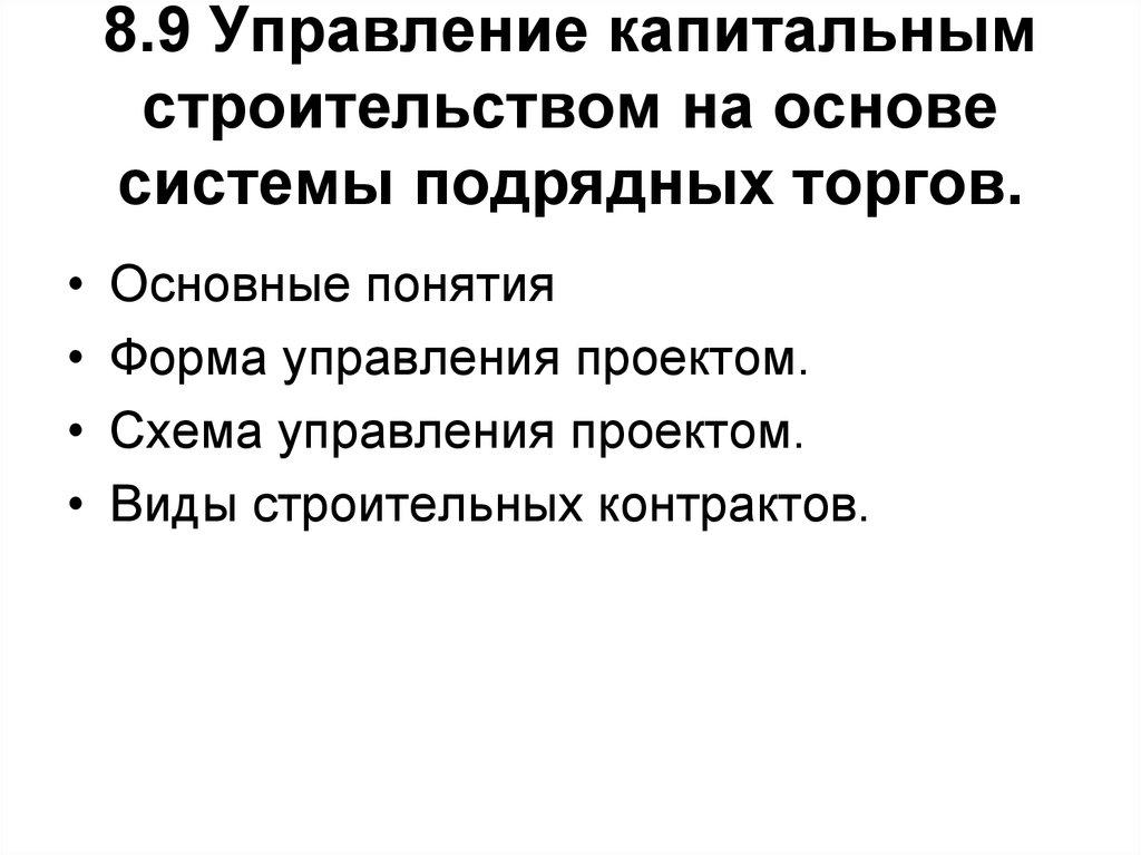 53. 8.9 Управление капитальным строительством на основе системы подрядных торгов.