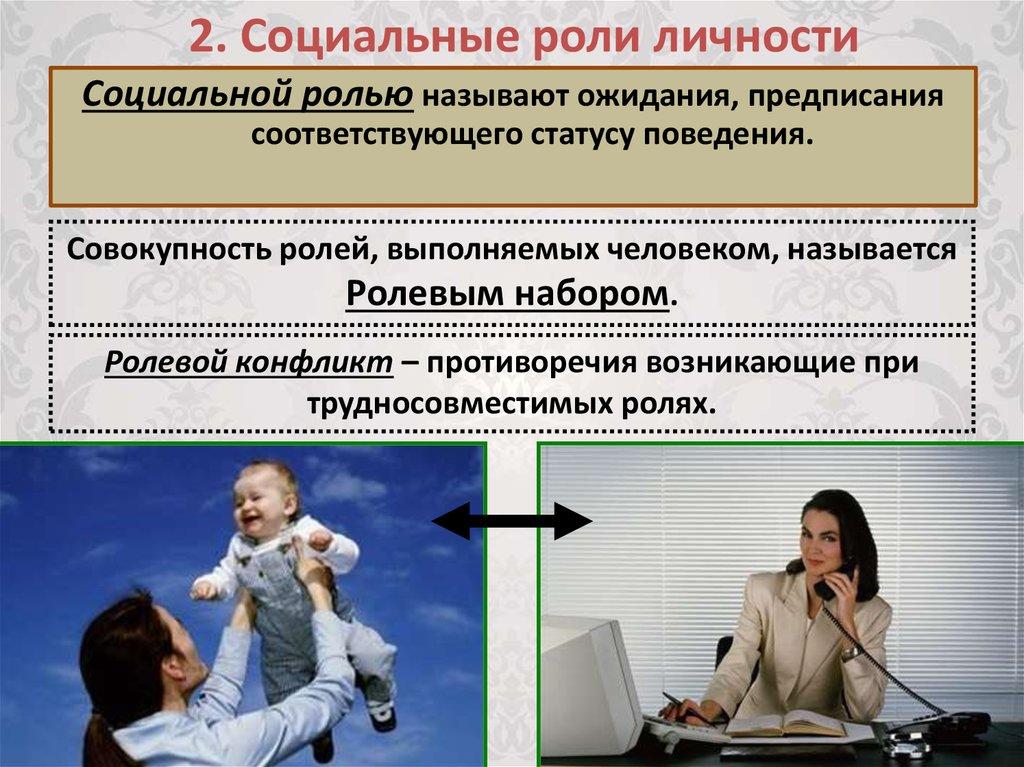 2. Социальные роли личностиСоциальной ролью называют ожидания, предписания