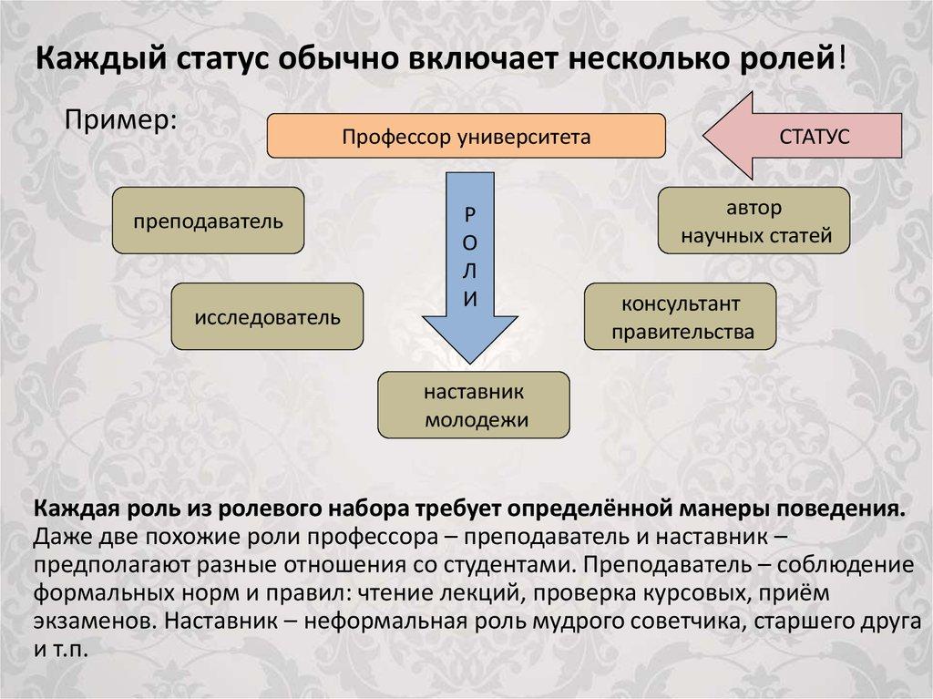 Каждая роль из ролевого набора требует определённой манеры поведения.