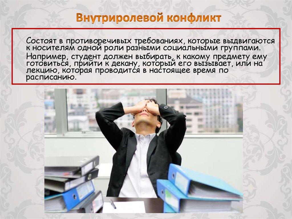 Человек является исполнителем множестваролей, требования которых несовместимы
