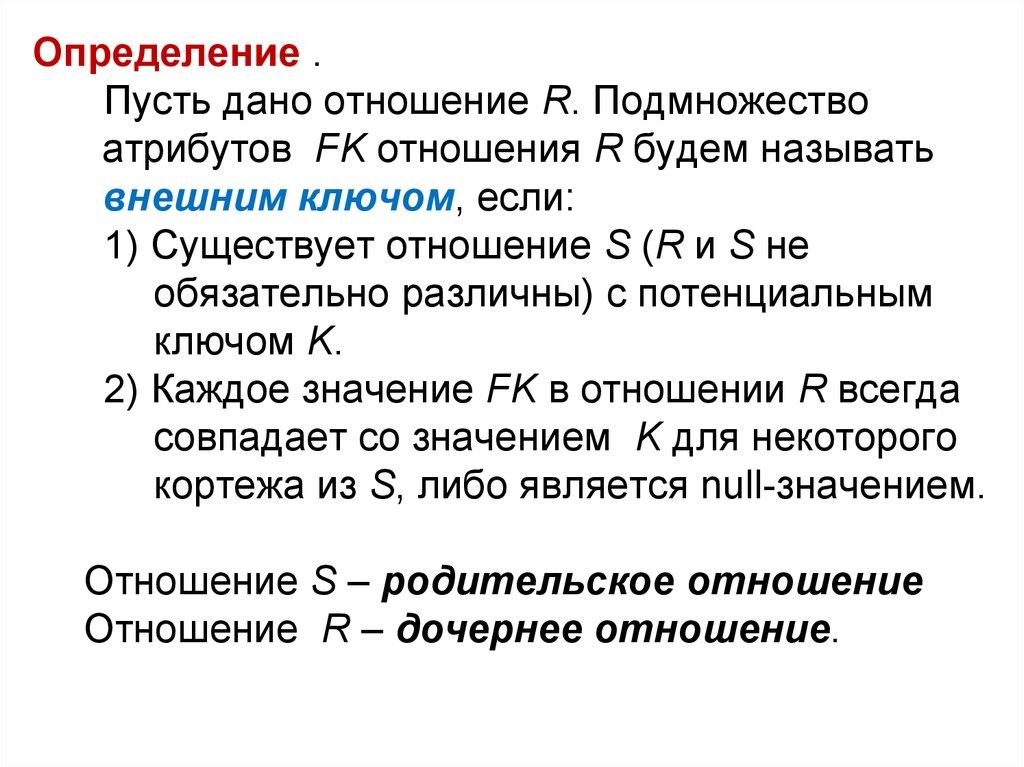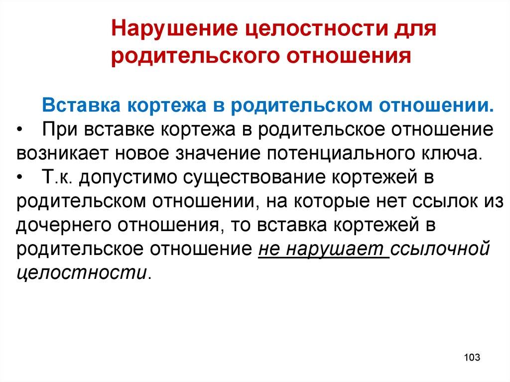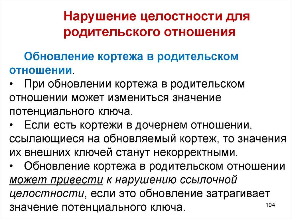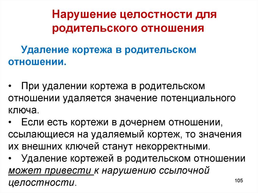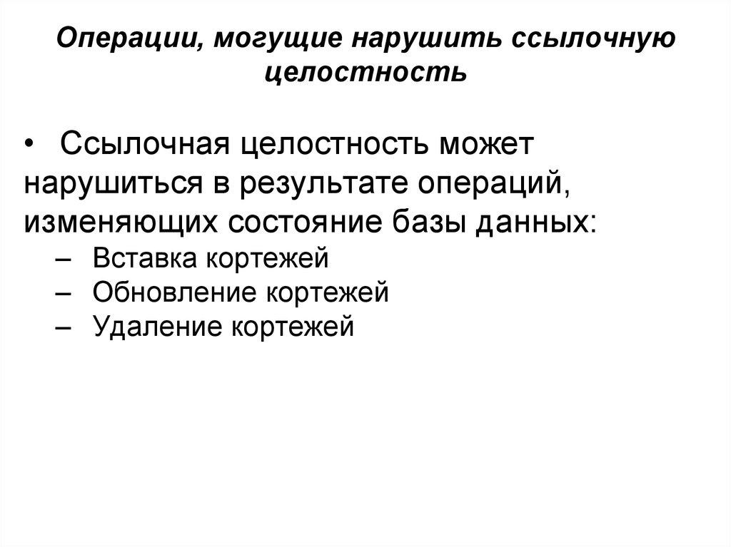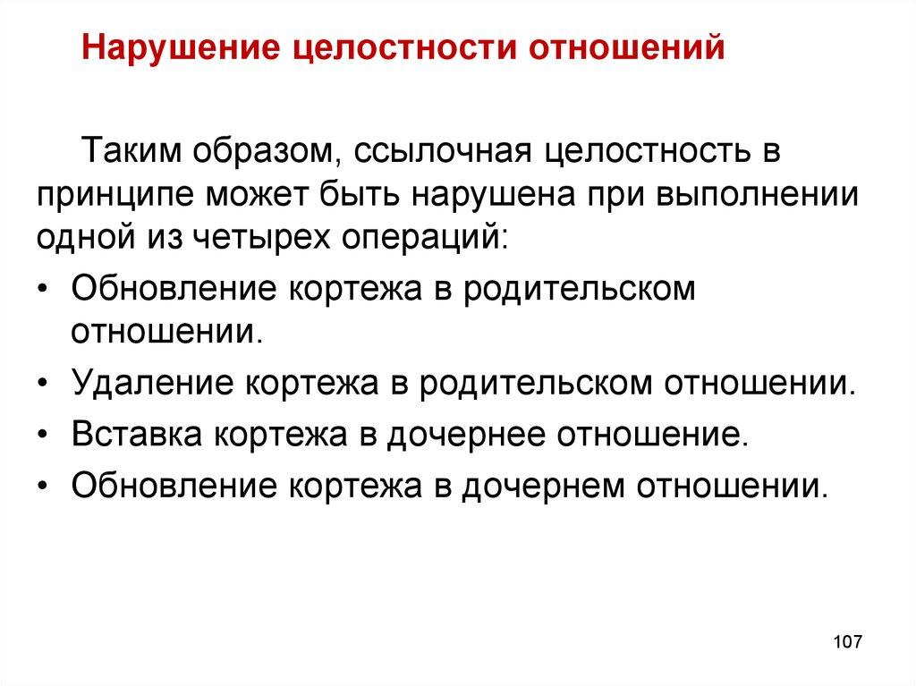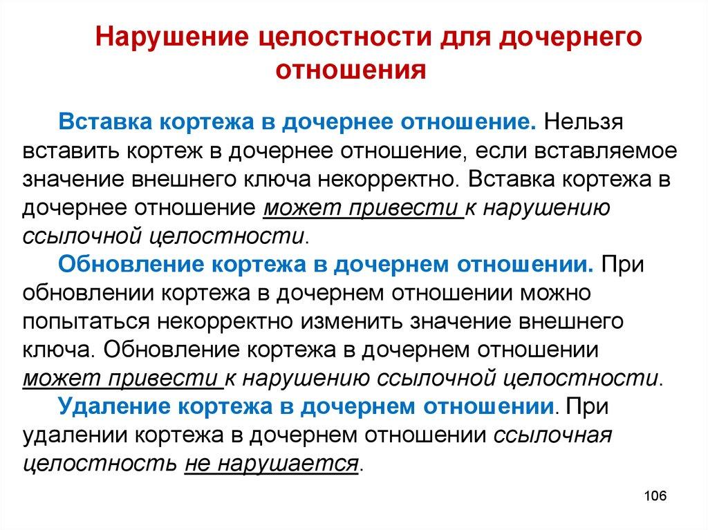 Нарушение целостности отношенийТаким образом, ссылочная целостность в