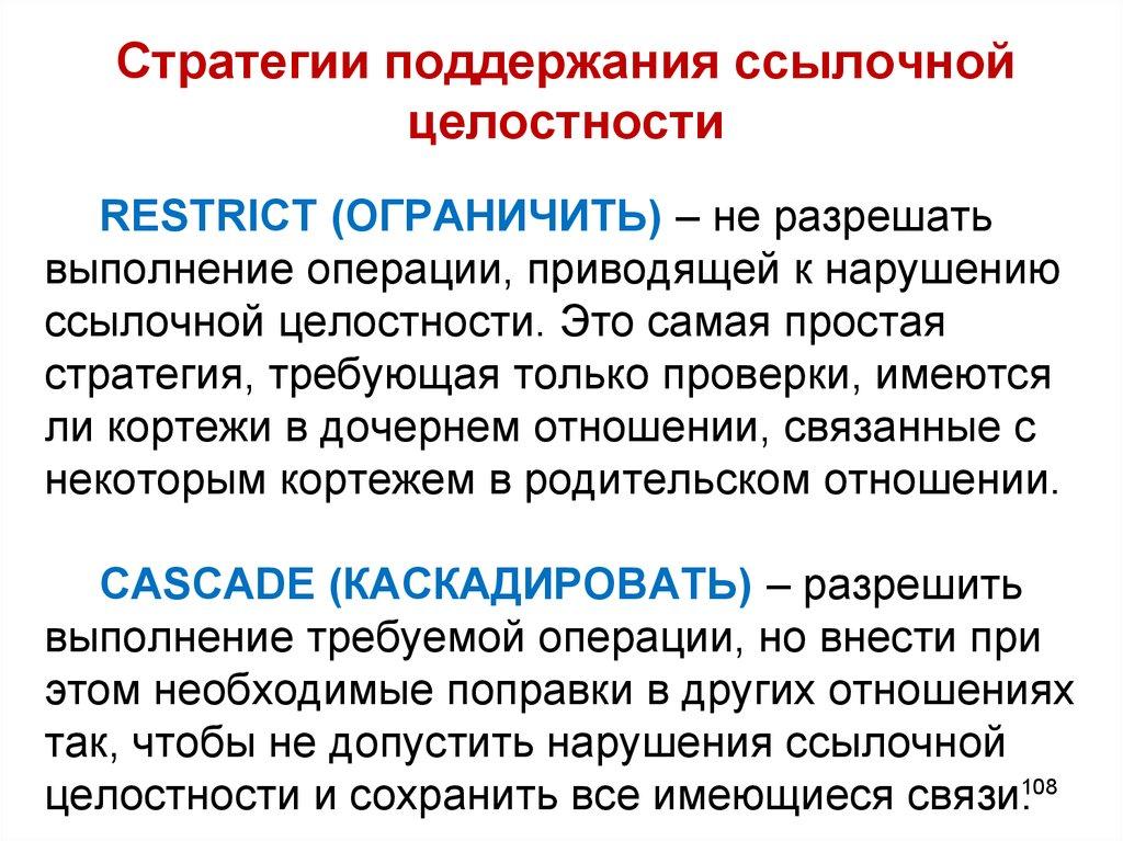 Стратегии поддержания ссылочнойцелостности